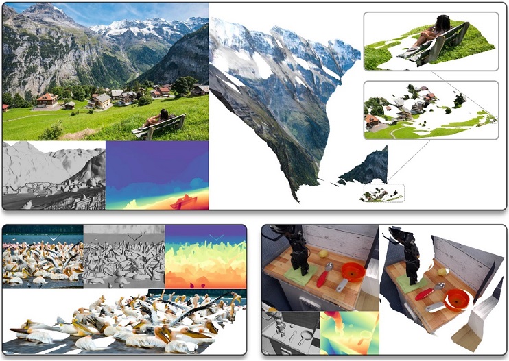 author = {Wang, Ruicheng and Xu, Sicheng and Dai, Cassie and Xiang, Jianfeng and Deng, Yu and Tong, Xin and Yang, Jiaolong}, title = {MoGe: Unlocking Accurate Monocular Geometry Estimation for Open-Domain Images with Optimal Training Supervision}, booktitle = {Proceedings of the IEEE Conference on Computer Vision and Pattern Recognition (CVPR)}, year = {2025} } |