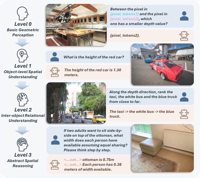 author = {Liang, Huizhi and Shen, Yichao and Deng, Yu and Xu, Sicheng and Feng, Zhiyuan and Zhang, Tong and Liang, Yaobo and Yang, Jiaolong}, title = {HiSpatial: Taming Hierarchical 3D Spatial Understanding in Vision-Language Models}, inproceedings = {Proceedings of the IEEE Conference on Computer Vision and Pattern Recognition (CVPR)}, year = {2026} } |