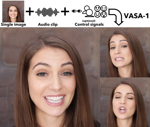 author = {Xu, Sicheng and Chen, Guojun and Guo, Yu-Xiao and Yang, Jiaolong and Li, Chong and Zang, Zhenyu and Zhang, Yizhong and Tong, Xin and Guo, Baining}, title = {VASA-1: Lifelike Audio-Driven Talking Faces Generated in Real Time}, booktitle = {Advances in Neural Information Processing Systems (NeurIPS)}, year = {2024} } |
